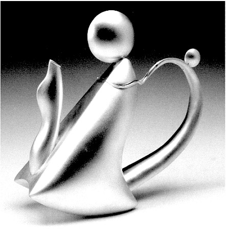Teapot © Materials: sterling Dimensions: 7.5" high x 6.5" wide x 2.5" deep School: San Diego State University Teachers: Helen Shirk, Arline Fisch Metal-arts department head: Helen Shirk Photo: Helen Shirk Back to the Winners' Page