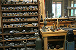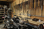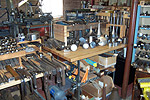 Many people think all silver objects are simply cast and polished - that includes tea sets, flatware, and other useful and sculptural works of art. This couldn't be farther from the truth. In fact, silversmiths must make a huge investment in tools, equipment, and even space to fabricate and forge what you may be using or have displayed in your home. Many tools are handwrought or machined for specific jobs that may never be used again. Pictured below are selected views of Artisan workshops and how they're organized. |